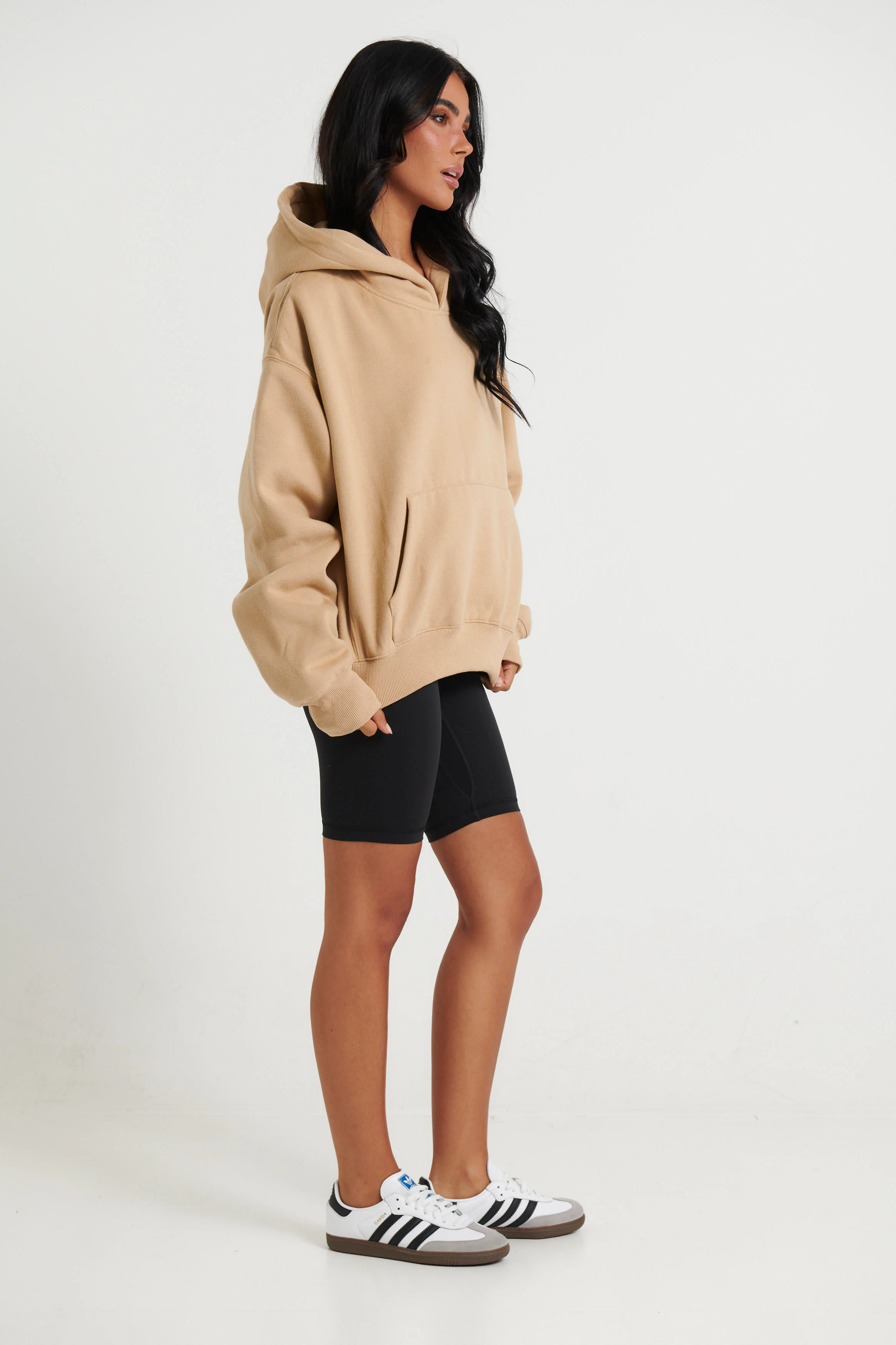 Unisex Roman Cropped Drop Hoodie Stone